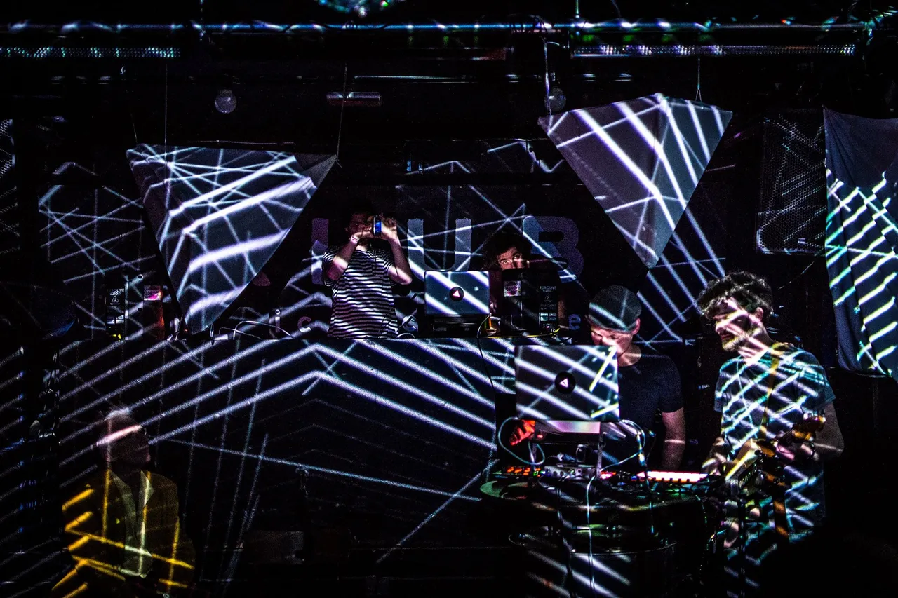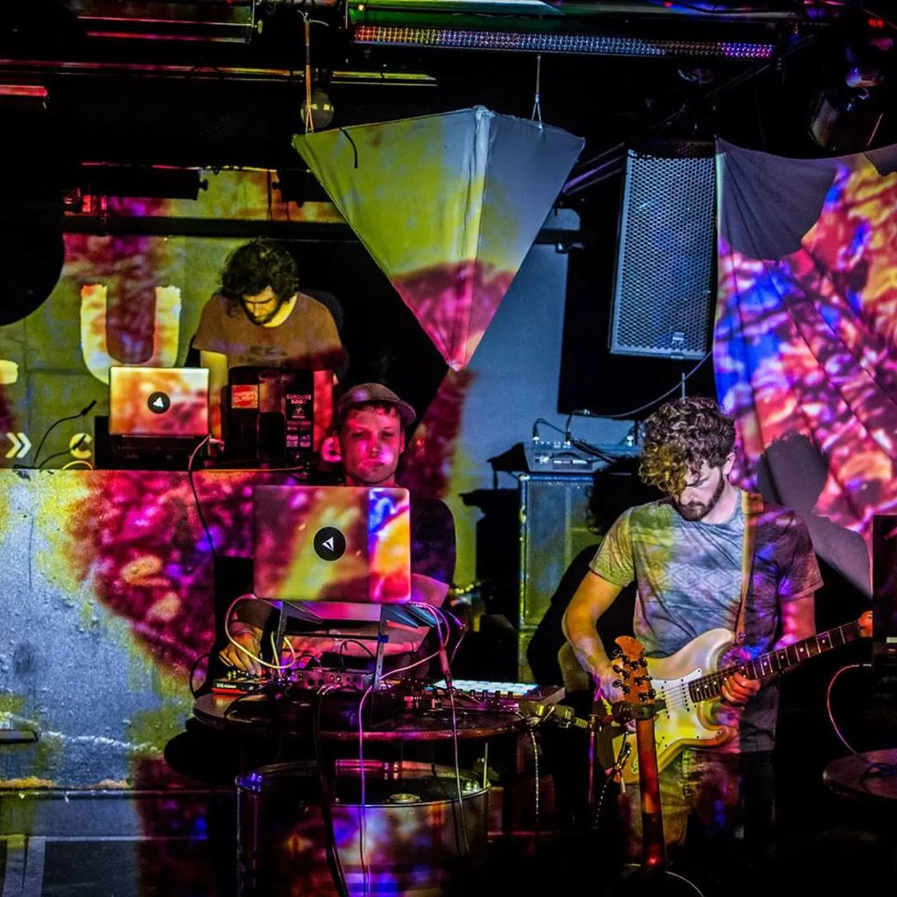 Das Trio Triptychon aus Dortmund und Wuppertal schafft Musikbildlichtkunst. Das bunte, improvisierte einer Jazz Combo trifft auf exakte, treibende elektronische Beats und pulsierendes Licht. Zusammen komponiert nehmen alle Aspekte der elektronischen Musik, die Klänge der Gitarre so wie die Lichtbilder den gleichen Raum ein.