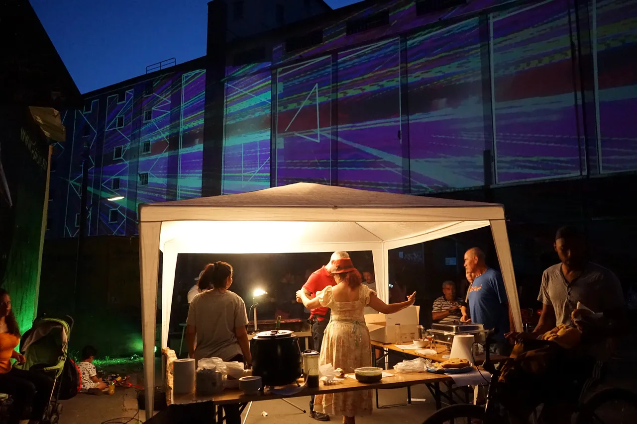 Ein echtes High-Light wartet bei Einbruch der Dunkelheit auf euch: Der renommierte Lichtkünstler Gregor Eisenmann lässt die umliegenden Gebäude in einem völlig neuen Licht erstrahlen. Abstrakte Formen treffen dabei auf weiche Linien und wir freuen uns darauf, uns von ihm verzaubern zu lassen. Musikalisch begleitet wird er dabei von DJ Timmy Tiefkühl. Dazu ein kühles Speicherbräu oder ne fesche Limo und der Abend kann starten...