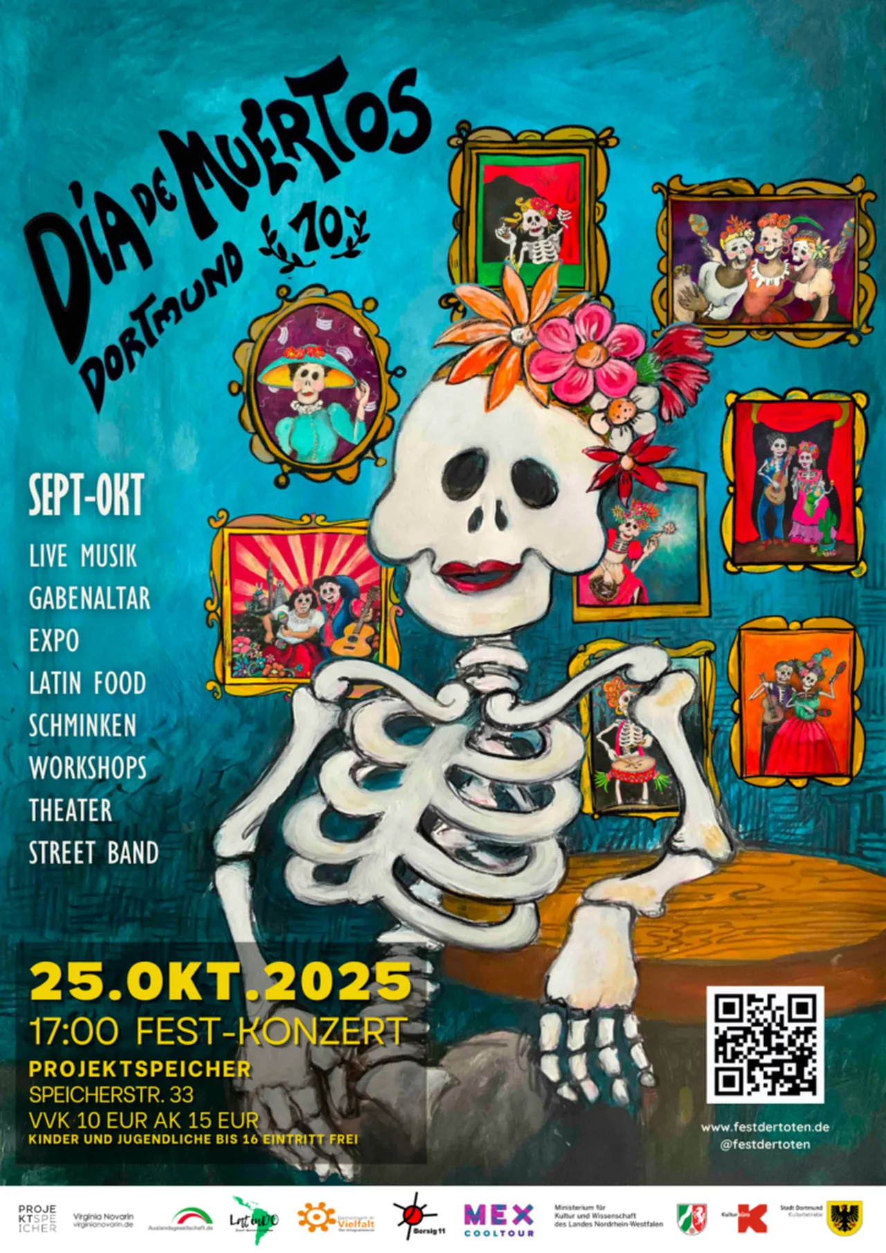 Im 2025 feiert das FEST DER TOTEN DORTMUND sein 10-jähriges Jubiläum mit einem tollen Programm: Ausstellungen, Workshops, Kunstaktion und natürlich das Fest-Konzert.