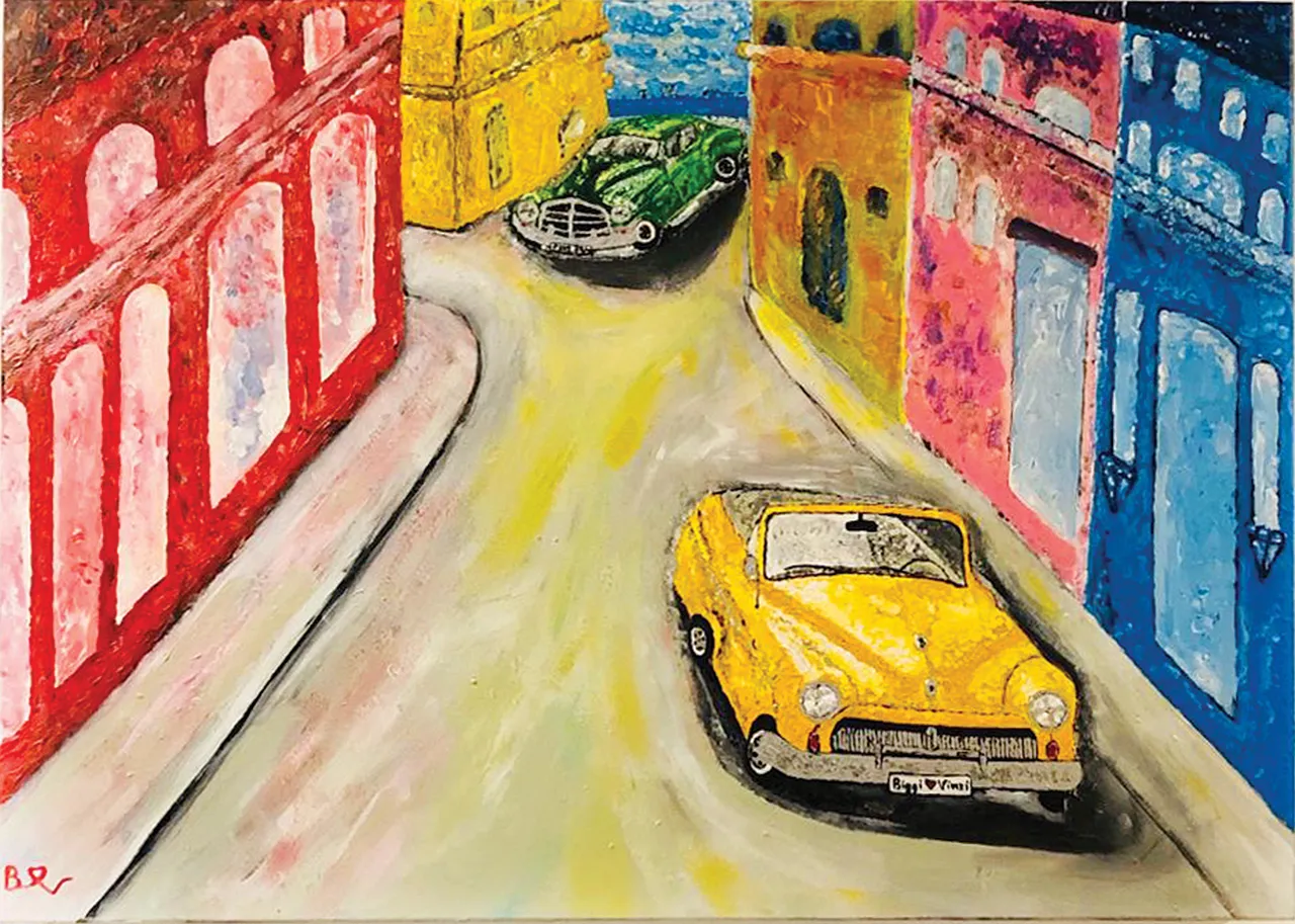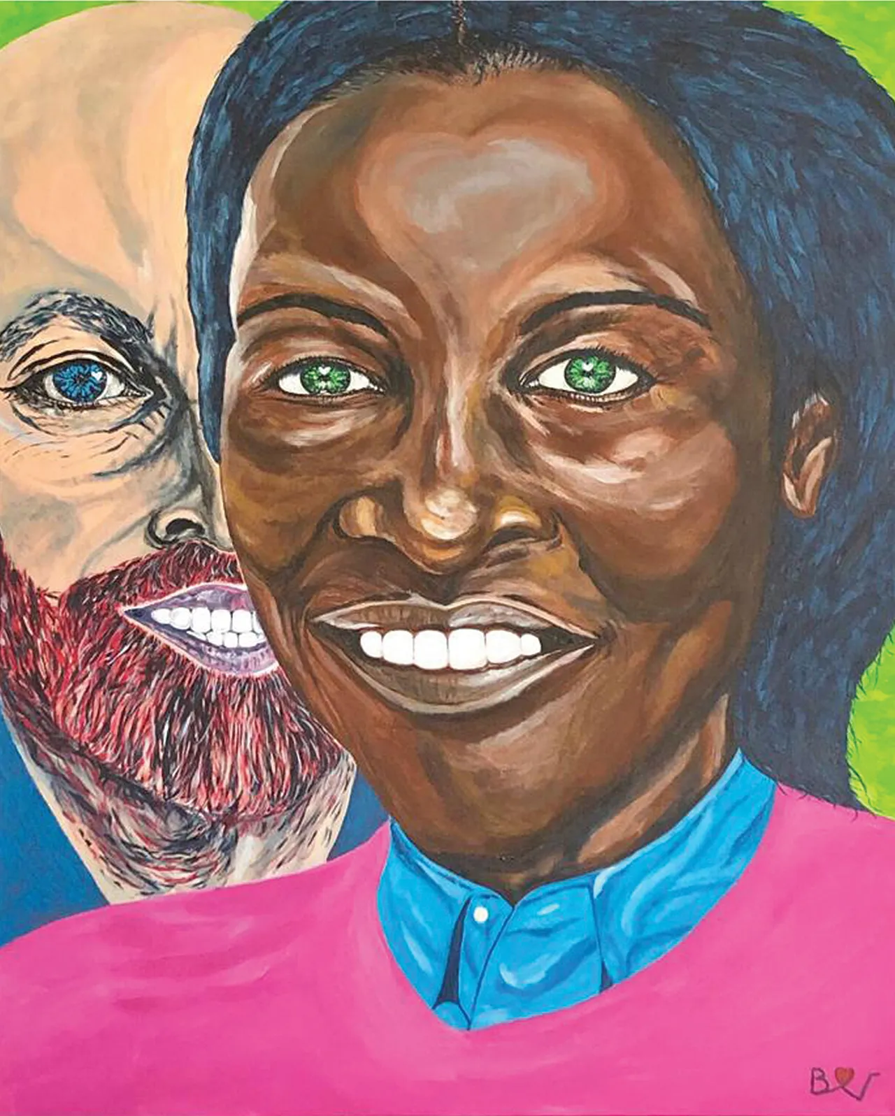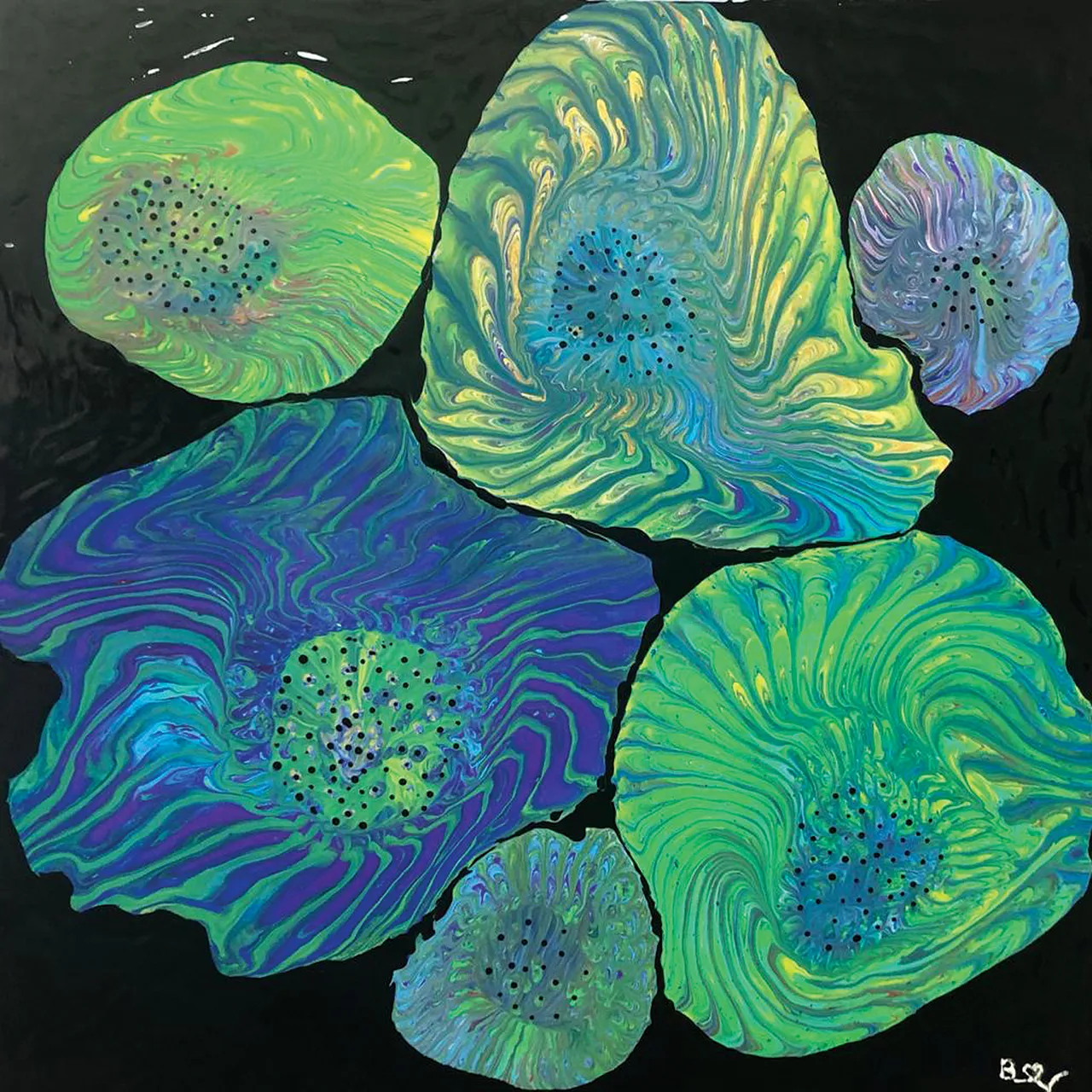 BIGGIVINZI, mit bürgerlichem Namen Gerald Groß, kam auf ungewöhnlichem Wege zur Malerei. Als gelernter Handwerker hatte er 2016 die Idee, sich für seine neue Wohnung ein Bild selbst zu malen. Die Überraschung über das Ergebnis inspirierte den 48-jährigen zu weiteren Bildern und er begann, mit verschiedenen Farben und Materialien zu experimentieren. Er malt vorwiegend auf Leinwand und Holz, gern auch in größeren Formaten. Und wenn ein Format nicht passt, dann wird eben der Rahmen schon mal selbst gebaut. Der Künstler fügt selbst gegossene Masken und 3-D-Ausdrucke zu Collagen zusammen, die Kreativität und der Humor, der oft auf den zweiten Blick hervorsticht, ist beeindruckend.